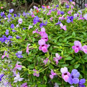 最近皆さんの投稿でよく見るのでうちも真似っこトレニア😼 花壇いっぱいに広がったスーパートレニア カタリーナ ブルーリバーです 適当にジャキジャキ✂️切ったけど、自然にまぁるく広がってます 来年はハンギングで育てたい🥰