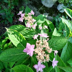 山紫陽花も沢山咲きてきました 山紫陽花は、小さい以外にも 葉っぱがザラザラしているとかの特徴があるようです 一つ一つを見ていると 可愛い🩷です