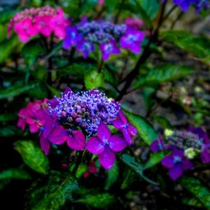 今日のお花 アジサイ 夕方 近くの公園に花散歩出会った紫陽花たち おたふくさんに会えて嬉しいです