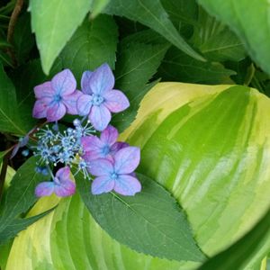 青色の甘茶 涼しげでいいですね〜。 葉を乾燥させて煮出すと甘味があるそうですね🍵 花が終わったら地植え予定です。
