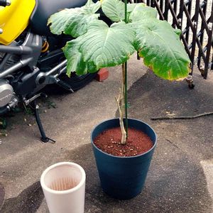 鉢が窮屈そうだったウンベラータを植え替えました。大きく育っておくれ〜