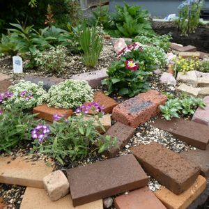 我が家の小さな庭は通路を境に少しずつテーマを変えています このコーナーは 小上がり寄ってらっしゃい(今つけました) 庭の奥のほうにあって、レンガなどでちょっと盛り上げて、近くに寄って見たい花を植えようと思います 庭全体がひとつのコンセプトというのにも憧れるのですが、どうにもセンスとお勉強が足りないようでとりあえず小さな部分からと、低木以上の樹木は使えない(先々維持できない)ことからこの方法にしました いつまでも発展途上で楽しいです 早く定年退職してデイガーデナーになりたい( ˆᴗˆ ) さて、今年から始めた寄ってらっしゃいコーナーは、まだまだ緑ばかりですが5月の高温カラカラを乗り切って後方のコ達につぼみが付き始めました わくわく楽しみです(^o^)