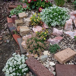 寄ってらっしゃいコーナー 岩崩れに流れる小花の滝をイメージして植えたアリッサムとトリフォリウムとアンドロサセ アリッサムさんの勢いがあり、上流の大きめ白アリッサムが特にモリモリモリモリ!なんですけど〜お隣のミニダリアに覆い被さる勢いなのが想定外 嬉しい誤算ですが生き物は難しいなあ 今日は大雨の予報 昨夜のうちにかなり降って、今は小ぶりになり空も明るくなってきました