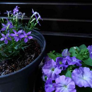 雨風避けて取り込んだら色がシンクロしてたので。 今年お迎えしたペチュニアは流石にまとまりがいいかも💧
