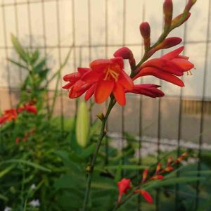 こんばんは🌆 玄関先で咲いてますが、名前がわかりません💦 @有松さん @にゃんたさんに名前教えて頂きました🙇♂️ モントブレチア(クロコスミア)という花です😄