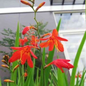 ヒメヒオウギスイセン (姫檜扇水仙:モントブレチア) 南アフリカ原産の帰化植物 別名 モントブレチア、クロコスミア