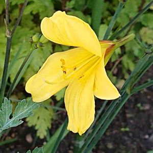 何を植えたっけ?と忘れていたんですが、花咲いてヘメロカリスだとわかりました☺️ 確かヘメロカリス コーキーだったはず。でもコーキーらしさが少なめですネ 最初の一輪目の🌼なので今後らしさが出てくるのかなあ❓あ まるでヘメロカリスの葉のように写ってるのはルドベキアの葉っぱです☺️