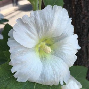 6/2投稿したたちいあおい、今朝 咲いたのは白でした🎉 たちいあおいはアルティア別名ホリホックって呼ばれるのですね。3年待って喜びもひとしおです。