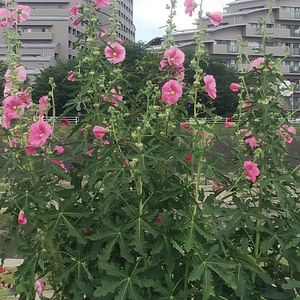 ・・・・・・・(°Д°) あれ?タチアオイってこんなでかかったっけ?ゆうに3mちかくありますけども、そろそろ軒下に届きそうですけど 他の所の2mぐらいでしたよね?そういう品種なの???
