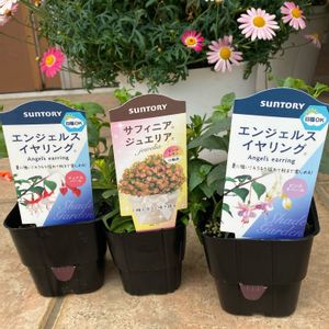 こんにちは〜😊 今日お迎えしたサントリー サフィニアジュエリア エンジェルスイヤリング2種類 サフィニアの方は新種見たいだす💓 エンジェルスイヤリングは 昨年育たなかったので リベンジです🥰🥰 上手く育ちます様に👏👏👏👍✌️ 雨の中車庫で植え替えします😌😆🪴🪴