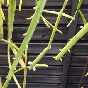 リプサリス ミクランサ✨ 緑色の実がたくさんついています☺︎ 半透明の花びらのお花も1つ咲いています♡ 緑色の実が半透明の白い実に変わっていってます♡(上の方に白い実があります) 日に日に 半透明の白い実が増えてます☺️ リプサリスの 何という名前なんだろう。。。