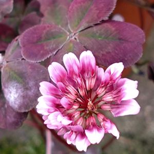 友人の家の庭にシロツメクサが赤くなったような花とクローバーが咲いてました。なんとも言えないグラデーションに目を奪われました。誰か名前を教えてください。