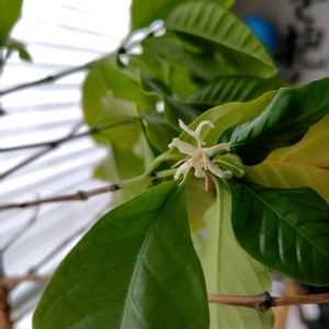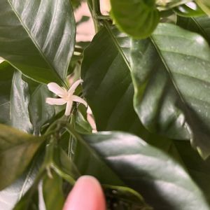 大事なコーヒーの木が植え替え以後、ずっと不調でした🥲 暖かくなり新芽を見てほっとしていたら、頑張ってお花も咲かせました🥰