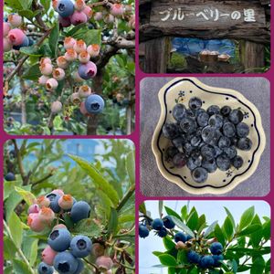 ブルーベリー狩り〜 美味でしたー😋🎶💕 10円玉大のブルーベリーがゴロゴロ 最大で500円玉大だそう。 近くにいた方が見つけてました。 かづの精果園さん 苗木も販売してるみたいです。