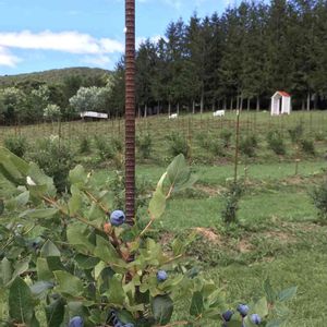 今日のお花「ブルーベリー」 連投で失礼します… ブルーベリー畑🫐🫐🫐 支柱の先にトンボさん ❤︎ 北海道 赤井川村アリスファーム🐐