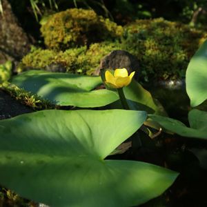 滋賀県2日目 モネの池 お花は諦めてましたがコウホネが咲いてました オレンジのコウホネは初めて ベニコウホネと教えて頂きました ありがとうございました😊 池も川の水も綺麗です🎶