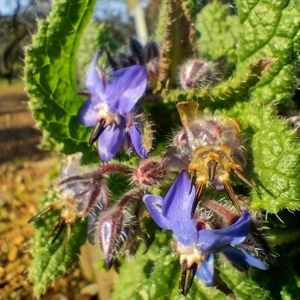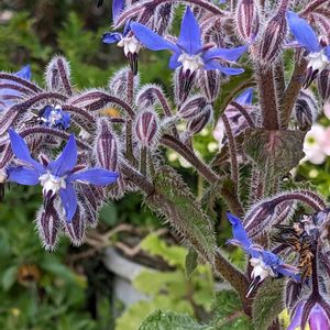 春の嵐がすぎ去りハーブ畑へお散歩🐹😊 今年植えたラベンダーの傍には零れ種のボリジが花を咲かせてました。 メランコリーを吹き飛ばすと云われる星型のお花。 お花は砂糖菓子にしたり。若葉ならサラダ。キュウリのような風味。