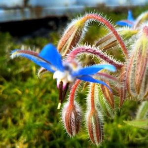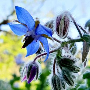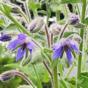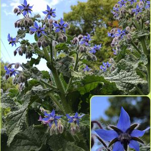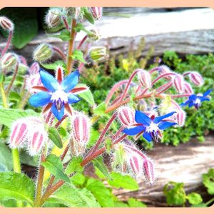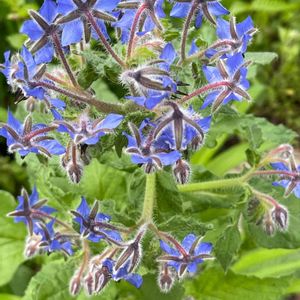 ボリジ マドンナブルーの星形の花は、砂糖漬け にしたり、そのままサラダや飲みものに 入れて、エディブルフラワーとしても使 われます🎶 薬効もあるようです💓 和名 ルリジサ ムラサキ科 ルリジサ属(ボラゴ属)