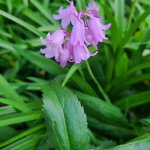 ツリガネスイセン🥀 キジカクシ科 ツリガネズイセン属 いつもの散歩道🚶♀️ スイセンの葉に似て釣鐘状の可愛いピンクの花が咲いてました💓💕💮 二枚目は星形のオオアマナ と共に寄り添うツリガネスイセンです✴️💖