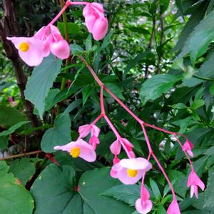 今晩は 🩷今日の花🩷 シュウカイドウ 夏の猛暑で葉が一部焼けてしまいました 頑張って咲きましたよ(*´꒳`)ꕤ…˖*(⁎˃ᴗ˂⁎)⤴︎⤴︎