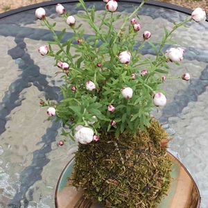 おはようございます🌞☂️ 花かんざしの苔玉です💕 道の駅で見つけて、即ゲットでした😊