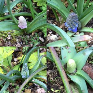 我が家のムスカリ、やっと頭を出しました😊ミックスの球根を植えたので、色んな色が楽しめそうです💕