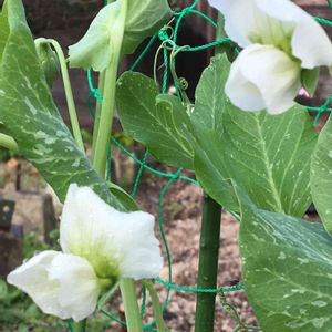 えんどう豆のお花、たくさん咲いています💕花もですが、葉の模様もきれいだと思います😊