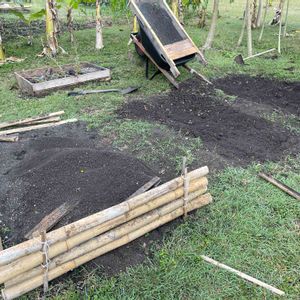 トマト栽培の跡地にガーデンベット作成中。竹で囲おうと思ったけど竹が足らないのでパレットの木も活用します。今週末に完成できれば良いなー。 今度はさつまいも🍠を植えようと思います。