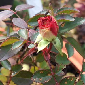 グリーンアイスの蕾です💕白い花なのに、蕾は赤いんですね😊とってもゆっくり生長していますが、どう変化するか楽しです❣️