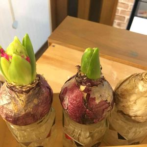 みなさんこんばんは💕💕 ヒヤシンスに変化がありました😊 いちばん左のピンク、花びらが見えています😍それにしても、個人差ありすぎ😆
