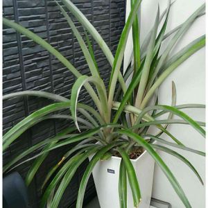 🍍です。 お土産に貰った🍍を食べて、実の上に付いてた葉(クラウン)を育てています。 品種はスナックパインだったかな、良く覚えてないけど、ちぎって食べる🍍だった記憶が。。😅 昨年は日焼けをさせて白くなった葉を根元から✂✂したけど、今年は大分復活してくれて昨年並みに戻ってきました😊 そろそろ室内に取り込む時期。。。 いつも10℃を目安に取り込んでいます。 だけどこの🍍、結構室内で場所を取って困り物なんですよ、だって葉の長さが75㌢ほど有り、それが↖↗に伸びてるから。。 ホンとは株分けして1本立にした方が良いけど、室内に置く場所も無くて難しい問題です。。 実は出来た事が有りません、来年に期待かな😊