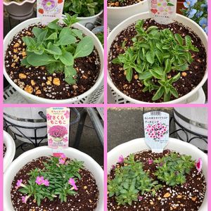 こんにちは♪ 昨日 植え付けました😊 サントリーさんの いちごシェイク ももいろハート さくらもこもこは 1株植えです 成長が 楽しみです💕