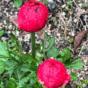 この雨で生き生きとして大きくなってきたストロベリーキャンドル🍓🕯𓈒 𓏸4月の終わり頃には真っ赤な花を1面に咲かせてくれそう🍓🍓 鉢から地植えにしたビオラも綺麗に咲いてます💜