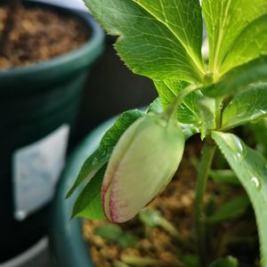 クリスマスローズ 同じ鉢のつぼみだけど、この子には覆輪がありそう。 咲くのが待ち遠しい。