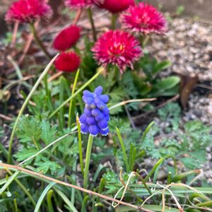 我が家のムスカリ、やっと咲き始めました💕夏の間にたくさん花を植えていた場所なので、もう咲かないかなと思ってた😀