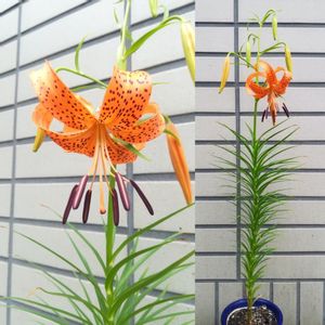 5月末に鉢に植えた、 食用ユリの花が、丁度2ヶ月で咲きました。😆 葉っぱは違いますが、 花はオニユリとそっくりです。🤔
