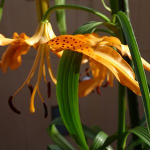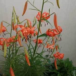 食用ユリ根の花です。 昨年花が終わってから放っておいた鉢でもちゃんと咲きました。😅