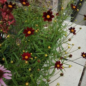 ぽつぽつ咲きかけたコレオプシス。 バーガンディカラーがおしゃれさんです😆😜✨