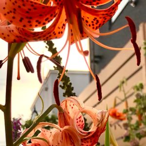 鮮やかなオレンジ色に黒の斑点。 これぞユリ!って気がします。 連日の暑さで一気に満開です。