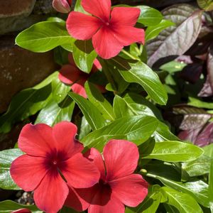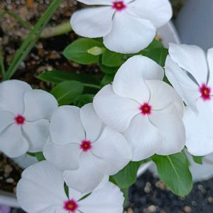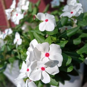 日々草紅ざくらと ビンカピュアホワイト💕 我が家で今一番元気なお花です。 毎日見てるとわからないけど 1ヶ月前の写真と比べたら4~5倍の大きさになってました☺️