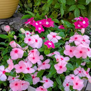 おはようございます😊 今日もジメジメ シトシト☔ ニチニチソウ 2種植え🌸ビンカ🌸 雨にも負けじと 次々 カワイイ お花を咲かせています🎶 🩷ダントツ優勢♡🫧🤩 ❤️{ガンバレ~!! -------❁ ❁ ❁--------- くれぐれも 熱中症にお気をつけて🚰 今日も 良い一日を〜🤗🌸˖*