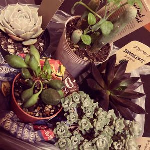 多肉植物100円でオークションでゲットしました😍 この時期暑すぎてお店も割引にして売り出ししたいと所だけど→福岡effecctはオークションで売りさばくんですよぉ〜😆 暑すぎて今回は20人くらいしか居なかった💦いつもは100人近くオークションに集まり皆んな植物好きの集まりだから2時間くらいオークションで全て売り捌くんですよぉ〜 今回最後は寄せ植え500円相当が300円とかほぼタダみたいな売り方しててこの暑さの中オーナーさんや職員の方も暑すぎて早く終了したかったんだろうなぁ💦
