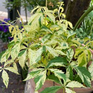 美しい斑入りアメリカヅタ✨ ふと見たら 先祖返りーー!!???( ゚д゚)? 緑一色の葉なんて今迄あった? しかも大きいし よく見ると半分位緑とかも とりあえずむしりとったけど どうなんでしょう〜?? 保険で挿し木しとこうかな😅 あ、目立たないけどナツヅタのお花も咲いてます〜🎵
