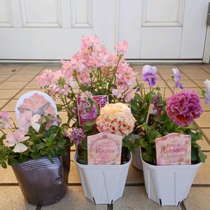 おはようございます🥰 皆さんのお住まいの地域は昨日の夜荒れませんでしたか?🙀 我が家はひどい風に見舞われてしまいました😓 花友さんから「台風のようだ」とコメントもらっていたけど、植え替えたばかりの鉢は寄せておいたから大丈夫😗と思っていました😭 しかし…寄せた鉢がまとめて倒れていました🥹 庭の半分のエリアが風の通り道になっていたらしく、ドミノ倒しの様になっていました😭 腰ベルトを付けてパジャマのまま外に出たら、主人がほとんど直してくれていました😭(感謝💓) 私はこぼれた土を元に戻したり、足りなくなったところに、植え替えの時に出た余った土を入れたりしました🥹 余った土は古土で癌腫の土も混ざっていましたが、「そんなの関係ねえ🕺」状態ですとにかく根を乾かさないように急ぎました😅 また来季は癌腫キャリアが増えるかも😚 気を取り直して…先日槇の木の剪定をした自分へのご褒美に、「風散歩」さんからお花を買いました😻💓 ほしかったアントワネット様、ロココちゃんなどが売られていたからです🥰 本当は今年お迎えしない予定でしたが、頑張ったご褒美😜