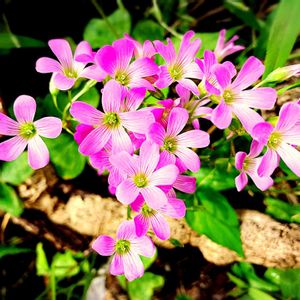 濃いめのワインレッドの葉。 ピンク色の花が可愛いです🌸 (見た目はムラサキカタバミの花と同じです)