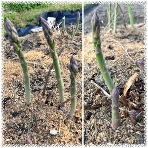 ニョッキニョキ💚 去年植えたアスパラが出てきました。 今年はたくさん取れるといいなぁ😋 見てくださってありがとうございます💚 (❀ᴗ͈ˬᴗ͈)⁾⁾ペコリ