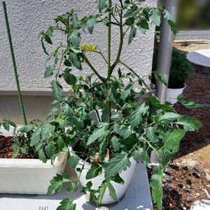 順調に育ってると思ってたトマトさん…🍅 あれ、あれれ? 葉っぱがクルクル丸まってる…😭💦💦 これは窒素過多が原因ですか…? 対策方法があれば教えてください🙇♀️💦 よろしくお願いします🥺