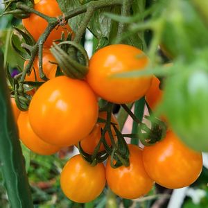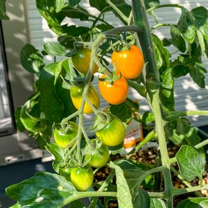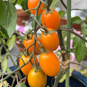おはようございます。 サントリー本気野菜 ミニトマト、金あま 第5花房良い感じに、色づいてきました。 娘達が、帰ってきて、スモモや、ミニトマト、収穫していきました。 今や背丈を越えてそれぞれ天頂部を、止めたので、第9花房まで収穫したら、おしまいかな? 花は、11花房まで花は咲いているけど、小さいです。 追肥して、後半頑張ってもらいたいです。 脇芽~成長した苗と、バトンタッチしようかな? 脇芽からの地植えのミニトマトが、腰くらいに成長しています。 あと脇芽からのミニトマト2鉢あります。 薄皮でないしっかりミニトマトに、なってます。肥料足してみます。