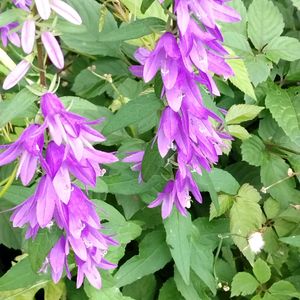 🌿💜キキョウ科のお花💜🌿 1⃣2⃣ ハタザオキキョウ (旗竿桔梗) 3⃣4⃣ ベルフラワー (乙女桔梗) 5⃣ キキョウソウ (桔梗草)