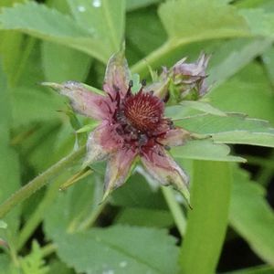 クロバナロウゲ(黒花狼牙) バラ科クロバナロウゲ属の多年草 花期:7〜8月 生育環境:亜高山帯の湿地や湿原、湖岸や河岸などの湿った場所 分布: 北海道、本州中部以北の亜高 山帯 ・茎は地面を這って分枝する ・草丈:30〜100㌢ ・葉は3〜7小葉からなり、小葉は 4〜7㌢の狭長楕円形で鋸歯有り ・花は暗い赤紫色で、直径1.5〜2.5 ㌢ ・花は葉腋から伸びる柄に付く ・萼裂片は狭卵形、副萼片は卵形で どちらも先が伸びて尖る 3年前に来園した時にも見ていた花なので珍しい花だけど名前はすぐにわかりました💡 シックなこの色が目立っていました 素敵な花です。